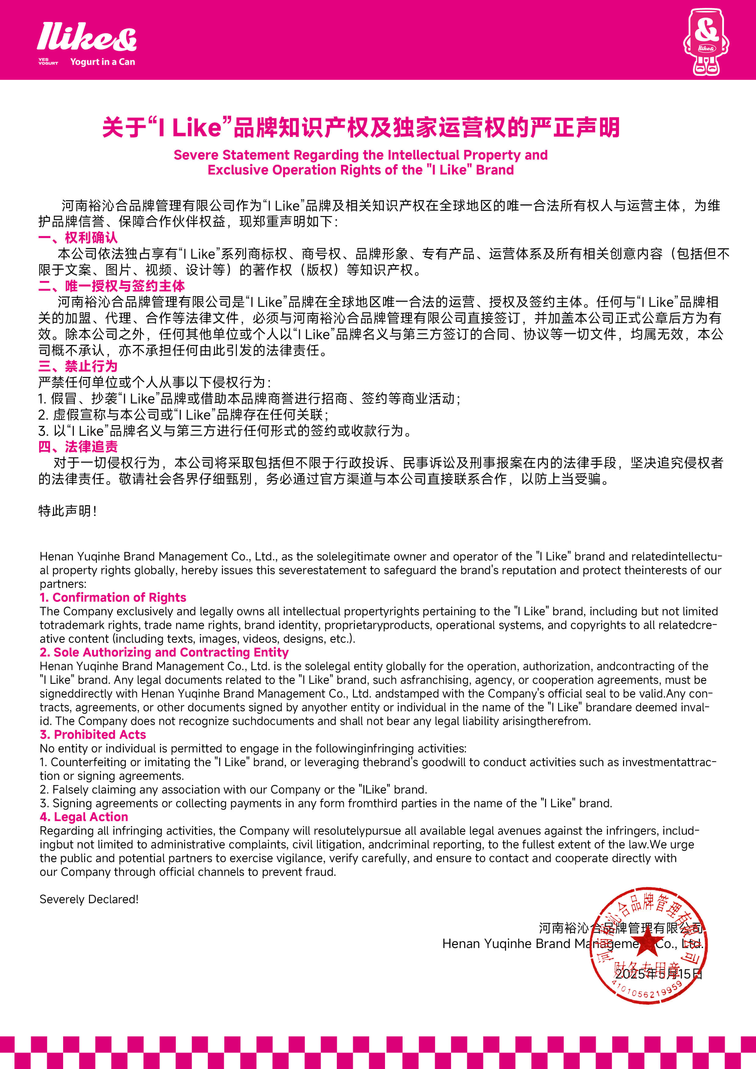 Recognize Yogurt Cans'product positioning,development direction,and busi-ness philosophy,and highly cooperate for development